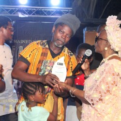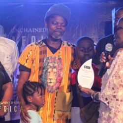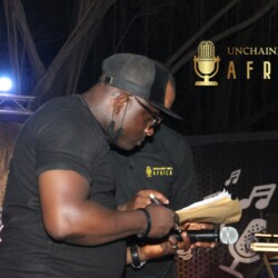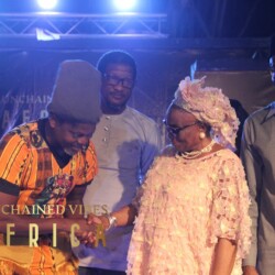 The Artist of the Month Spotlight celebrated actor Segun Adefila in recognition of his outstanding contribution to the advocacy for good governance in Nigeria. Goodwill messages were sent by the Co-founder Chicago Hip Hop Initiative Amina Norman-Hawkins and German percussionist Anselm Ramacher, Unchained Vibes partners from USA and Germany respectively. The citation was read by DJ Bola Browne while the award was presented by Taiwo Ajai-Lycett, OON, on behalf of Unchained Vibes Africa.