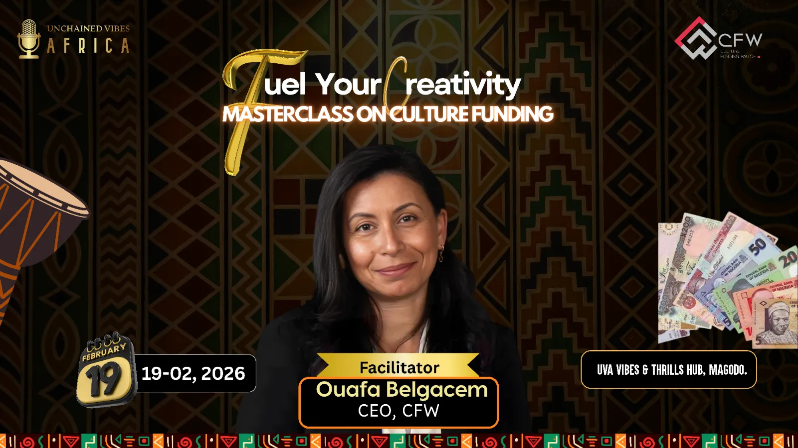 Unchained Vibes Africa (UVA) and Culture Funding Watch (CfW) are teaming up to host an exclusive, high-energy masterclass designed to help you reach true financial sustainability. Whether you are a visual artist, photographer, skit maker, videographer, music producer, independent artist, graphics designer or theatre practitioner, this session is built to flip the script on how you fund your dreams.