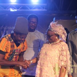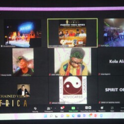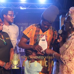 The Artist of the Month Spotlight celebrated actor Segun Adefila in recognition of his outstanding contribution to the advocacy for good governance in Nigeria. Goodwill messages were sent by the Co-founder Chicago Hip Hop Initiative Amina Norman-Hawkins and German percussionist Anselm Ramacher, Unchained Vibes partners from USA and Germany respectively. The citation was read by DJ Bola Browne while the award was presented by Taiwo Ajai-Lycett, OON, on behalf of Unchained Vibes Africa.